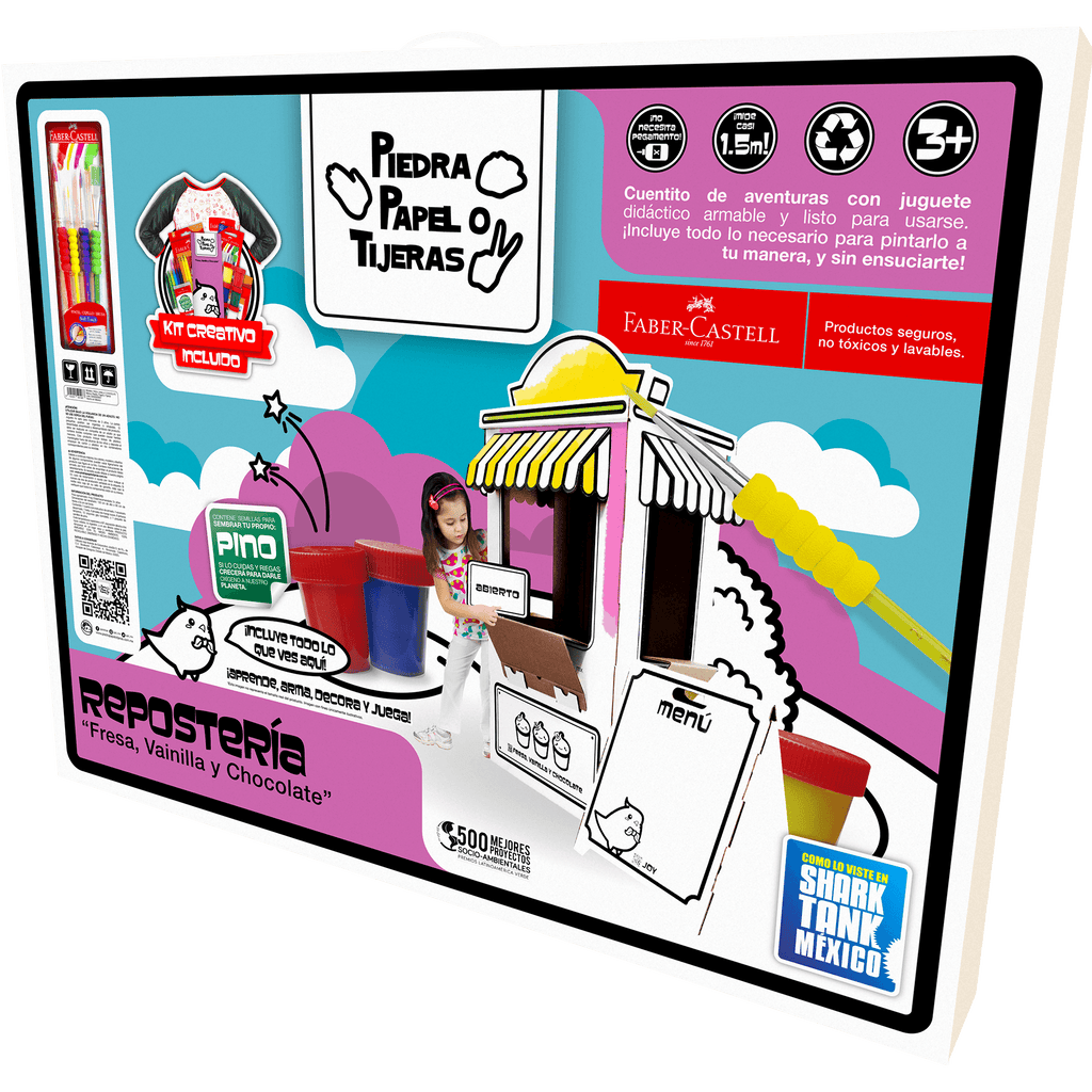 Contiene: 1 cuento 1 repostería para armar 1 letrero 1 menú 1 batita para pintar 12 crayolas 4 pinceles 6 pinturas 1 paquete de semillas de pino