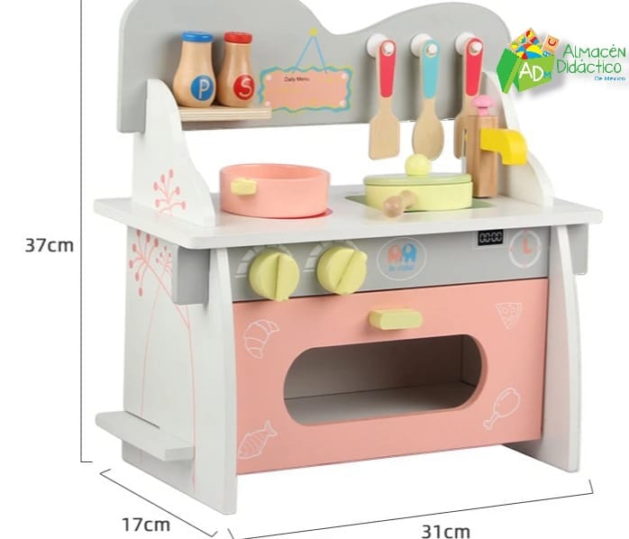 Cocinita para Niños . Excelente set de cocina para actividades recreativas como habilidades de motricidad e imaginación de los niños. El set incluye accesorios. Medidas: Alto 37 x Ancho 31 x Profundidad 17 cm.