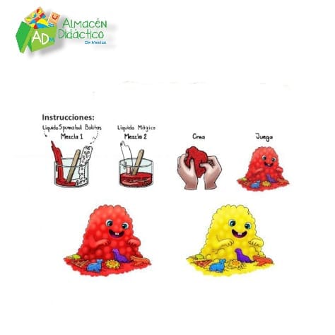 Contiene: 2 bolsas de bolitas, 2 líquidos s puma Bol, 2 líquidos mágicos, 2 botes alma cenadores y 2 agitadores.