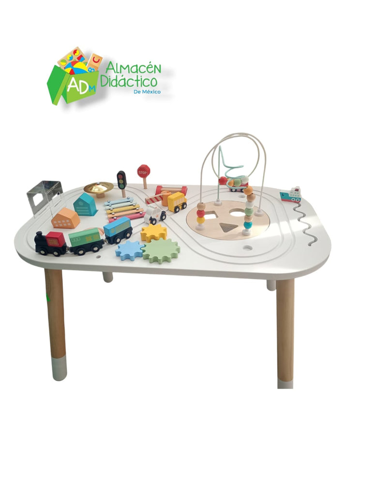 Esta mesa con distintas actividades de didácticas ayuda a los niños a mejorar sus habilidades motoras finas como coordinación mano-ojo, fomenta habilidades de resolución de problemas, así como mejora su concentración y asociación.