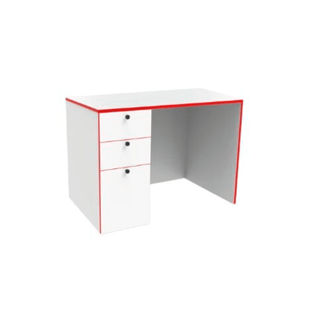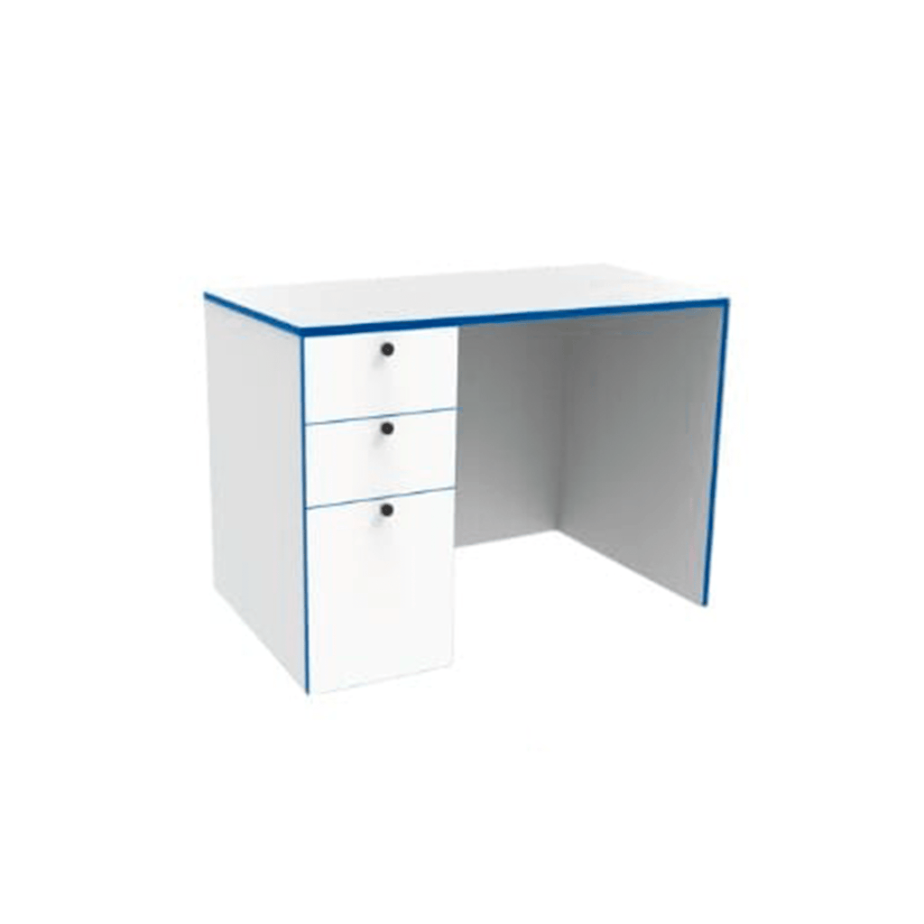 Escritorio con cajonera fabricado en melamina, con el tamaño ideal para espacios escolares, áreas de juego, consultorios o el hogar. Tiene 3 cajones con espacio para almacenar.