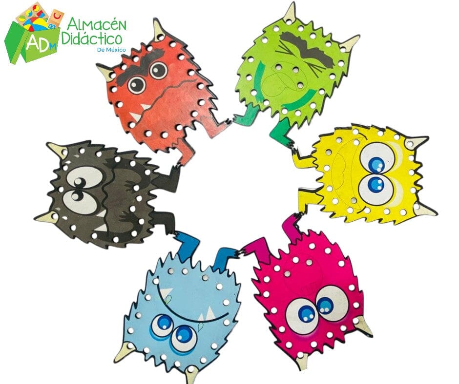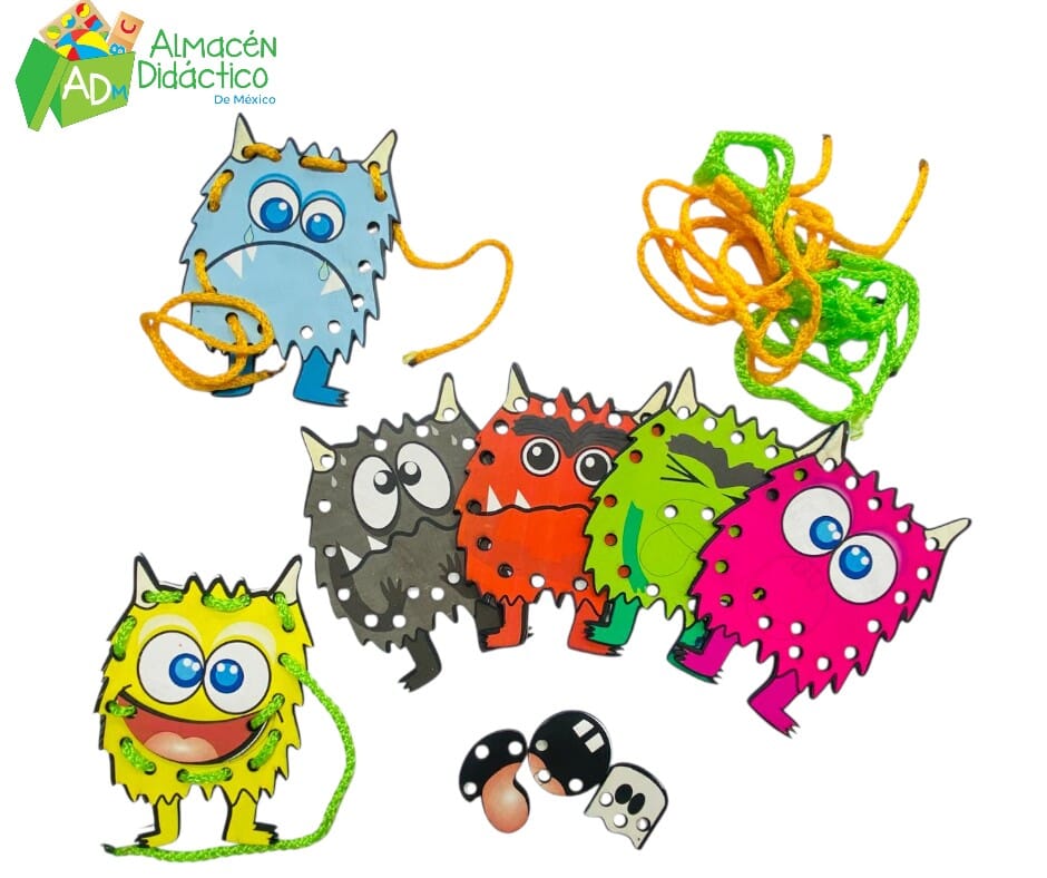 JUEGO DE ENSARTE CON 6 PIEZAS- MONSTRUOS